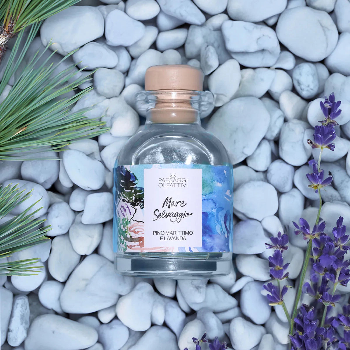Con Mare Selvaggio respiri la forza della costa mediterranea. Le note di testa di pino marittimo, timo e lavanda aprono con un tocco aromatico e rinfrescante, come vento sulla scogliera. Nel cuore eucalipto, cedro e patchouli donano profondità e carattere, fondendo verde e legno. Le note di fondo di fava tonka, abete balsamico e muschio marino (sea moss) completano la composizione con una sferzata marina intensa e persistente. È la fragranza perfetta per zone della casa in cui desideri un’energetica sensazione di pulizia e libertà, come soggiorno, veranda o ambienti affacciati all’esterno.
