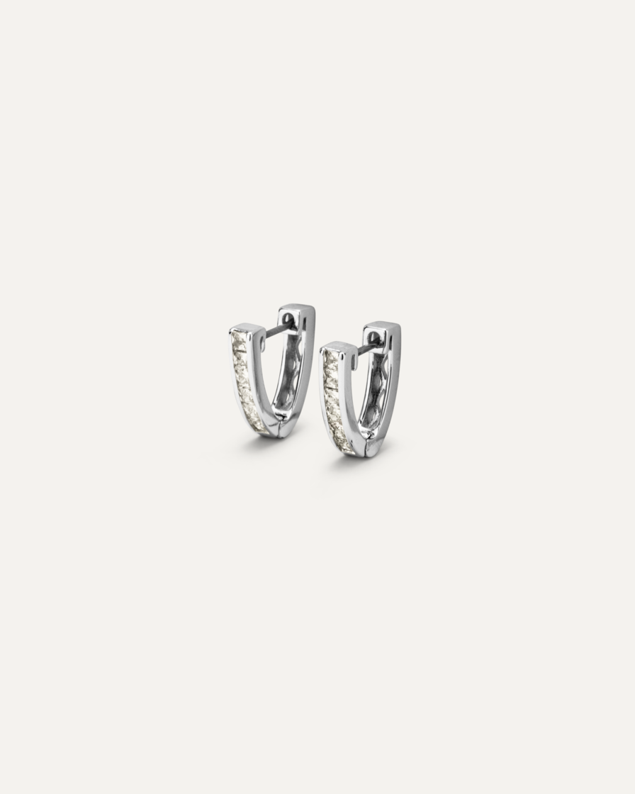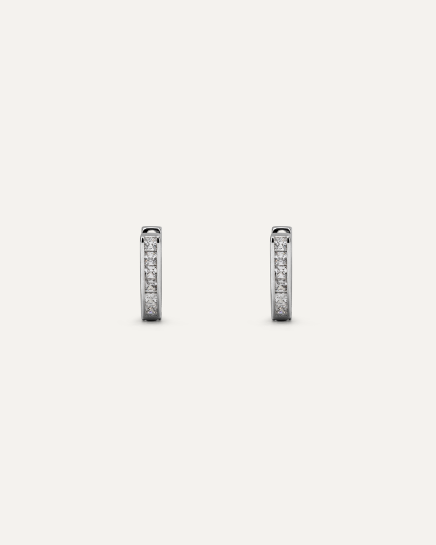 MODO D'USO Indossare gli orecchini aprendo la chiusura a cerniera, inserendo il cerchietto nel foro del lobo e richiudendo con attenzione fino a ottenere una vestibilità stabile e confortevole, facendo in modo che le pietre carré rimangano ben orientate verso l’esterno per evidenziare la loro brillantezza. AVVERTENZE Evitare il contatto con profumi, cosmetici e sostanze chimiche. Rimuovere gli orecchini prima di dormire, fare sport o entrare in acqua. Conservare in un luogo asciutto e separato da altri gioielli per preservare la finitura in argento e la brillantezza delle pietre nel tempo.Gli orecchini a cerchio Imma Argento sono un cerchietto medio dal design essenziale e moderno caratterizzato da un motivo a V impreziosito da pietre carré che riflettono la luce con una brillantezza raffinata rendendo il gioiello luminoso senza risultare eccessivo. La finitura in argento valorizza la versatilità del modello rendendolo adatto sia a look quotidiani sia a outfit più curati e sofisticati, con un equilibrio perfetto tra sobrietà contemporanea e eleganza minimalista. La chiusura a cerniera assicura una vestibilità stabile e confortevole durante tutta la giornata e il materiale ipoallergenico lo rende adatto anche a chi ha pelle sensibile.