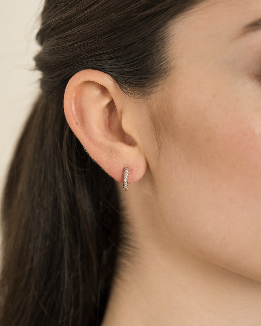 MODO D'USO Inserire delicatamente il perno attraverso il foro del lobo e fissare con la chiusura a cerniera. Possono essere indossati da soli per un look sobrio ed elegante oppure abbinati ad altri gioielli per uno stile più personalizzato. AVVERTENZE Rimuovere gli orecchini durante attività che potrebbero danneggiarli o causarne la perdita. Evitare il contatto prolungato con acqua, profumi o sostanze chimiche aggressive per preservare la lucentezza e la durata del materiale. Tenere fuori dalla portata dei bambini.Gli orecchini a cerchio Marta Argento sono un cerchietto medio dal design delicato e versatile, impreziosito da pietre distribuite lungo il cerchio che riflettono la luce in modo discreto ma evidente. La finitura argento esalta la luminosità del modello e lo rende facile da abbinare, perfetto per l’uso quotidiano ma adatto anche a occasioni più curate quando vuoi aggiungere un punto luce elegante senza appesantire il look.