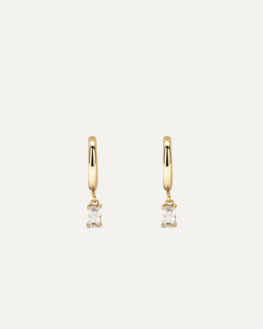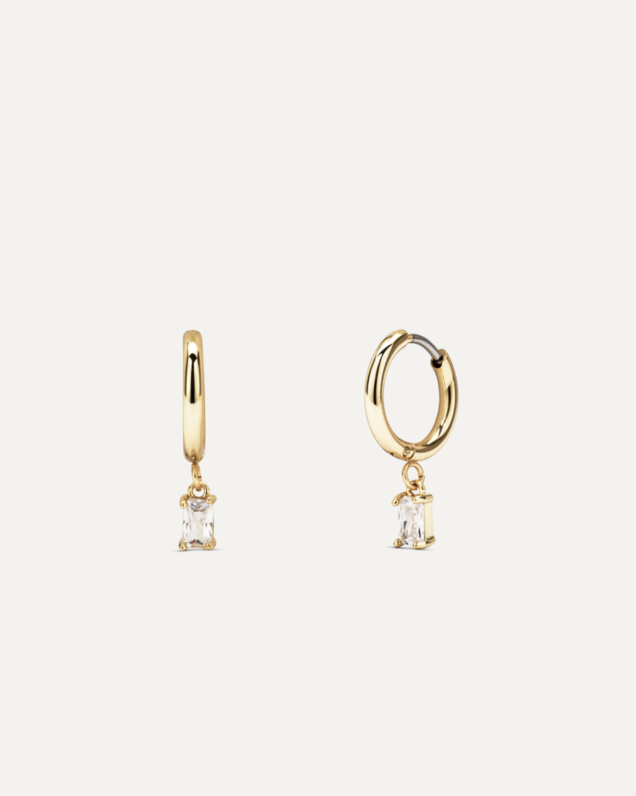 MODO D'USO Inserire delicatamente il perno attraverso il foro del lobo e fissare con la chiusura a cerniera. Possono essere indossati da soli per un look sobrio ed elegante oppure abbinati ad altri gioielli per uno stile più personalizzato. AVVERTENZE Rimuovere gli orecchini durante attività che potrebbero danneggiarli o causarne la perdita. Evitare il contatto prolungato con acqua, profumi o sostanze chimiche aggressive per preservare la lucentezza e la durata del materiale. Tenere fuori dalla portata dei bambini.Gli orecchini a cerchio Noemi Oro sono un cerchietto medio dal design pulito e contemporaneo, caratterizzato dalla presenza della baguette pendente che aggiunge un punto luce essenziale ma distintivo. La finitura oro dona al gioiello una luminosità calda e raffinata, rendendolo ideale per valorizzare il viso con un dettaglio elegante e moderno. La baguette pendente crea un delicato movimento che cattura la luce con discrezione, trasformando il classico cerchio in un accessorio ricercato, perfetto sia per l’uso quotidiano sia per completare look più curati con un tocco sofisticato ma minimale.