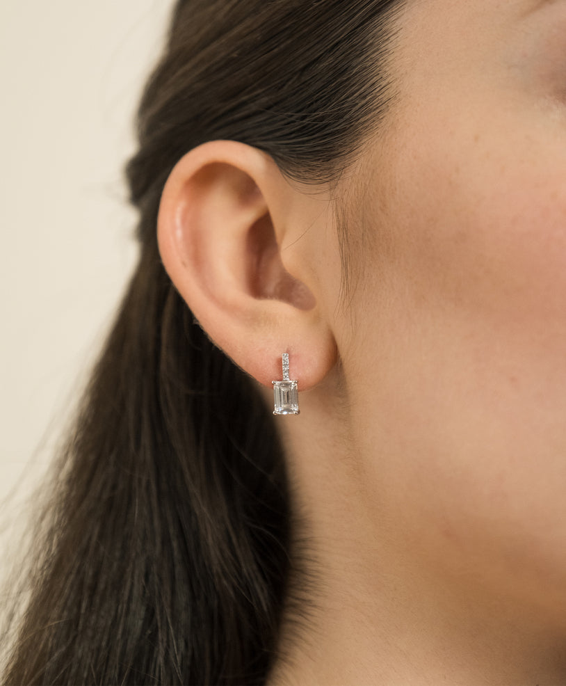 MODO D'USO Inserire delicatamente il perno attraverso il foro del lobo e fissare con la chiusura a cerniera. Possono essere indossati da soli per un look sobrio ed elegante oppure abbinati ad altri gioielli per uno stile più personalizzato. AVVERTENZE Rimuovere gli orecchini durante attività che potrebbero danneggiarli o causarne la perdita. Evitare il contatto prolungato con acqua, profumi o sostanze chimiche aggressive per preservare la lucentezza e la durata del materiale. Tenere fuori dalla portata dei bambini.Gli orecchini pendenti Annalisa sono un modello semi-pendente dal design elegante, definito dalla presenza della pietra a taglio baguette, che dona un effetto luminoso e raffinato con una linea pulita e slanciata. La forma baguette rende il gioiello immediatamente riconoscibile e valorizza il viso con una brillantezza discreta ma decisa, perfetta sia per completare look quotidiani curati sia per aggiungere un dettaglio più sofisticato nelle occasioni speciali. La struttura semi-pendente mantiene un movimento delicato e armonioso, mentre la chiusura a farfalla assicura una vestibilità comoda e stabile, lasciando che la luce si concentri sull’eleganza essenziale del taglio baguette.
